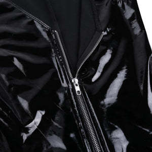 Women’s one-piece bodysuit leotard, wetlook PU leather design.